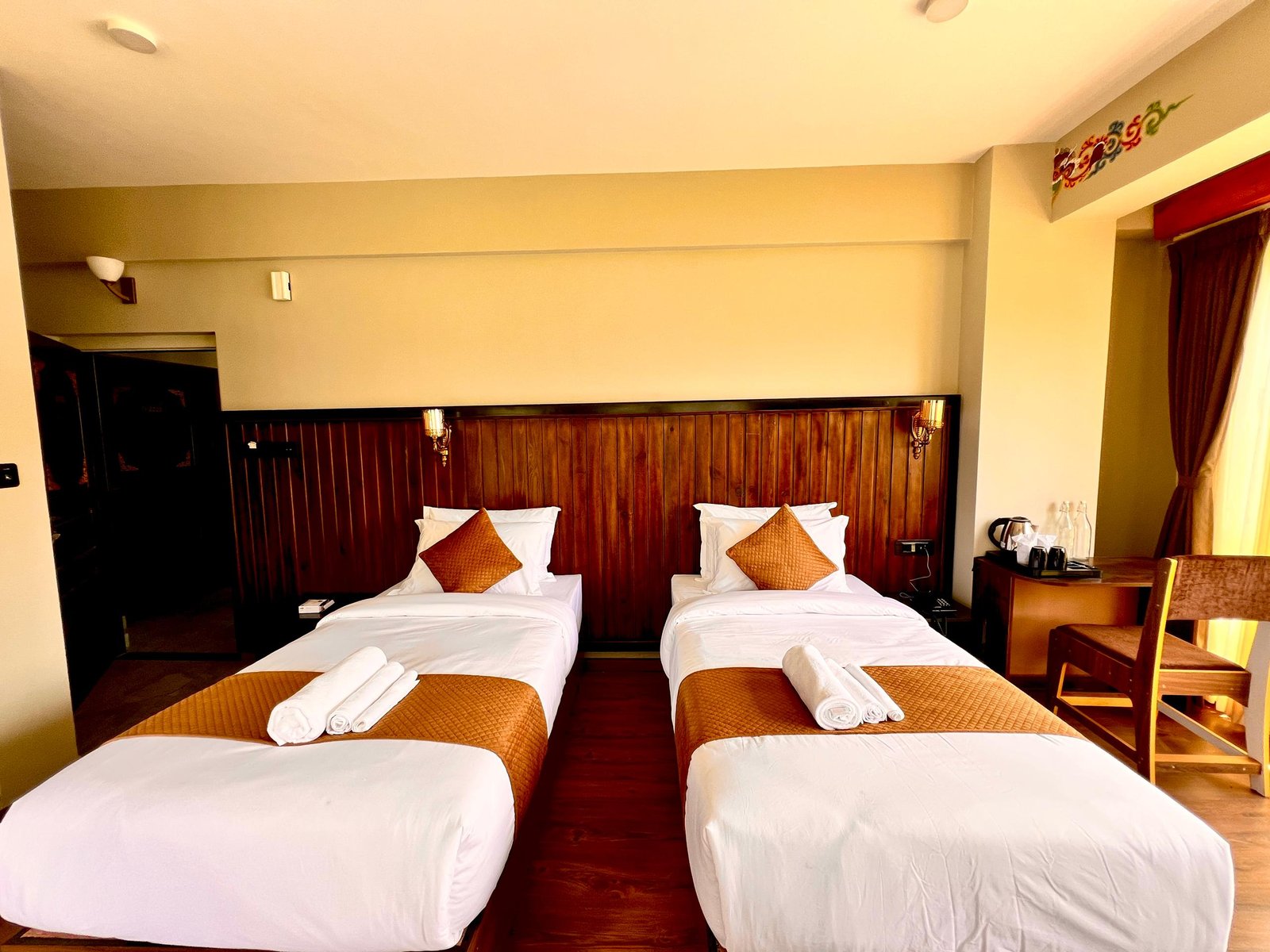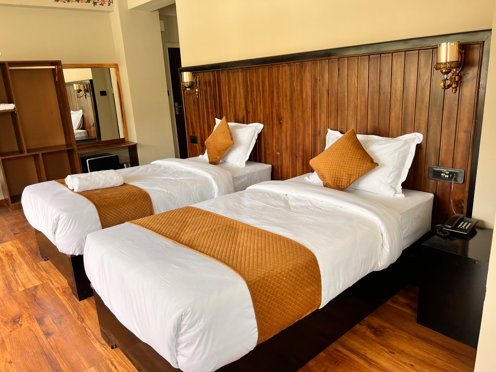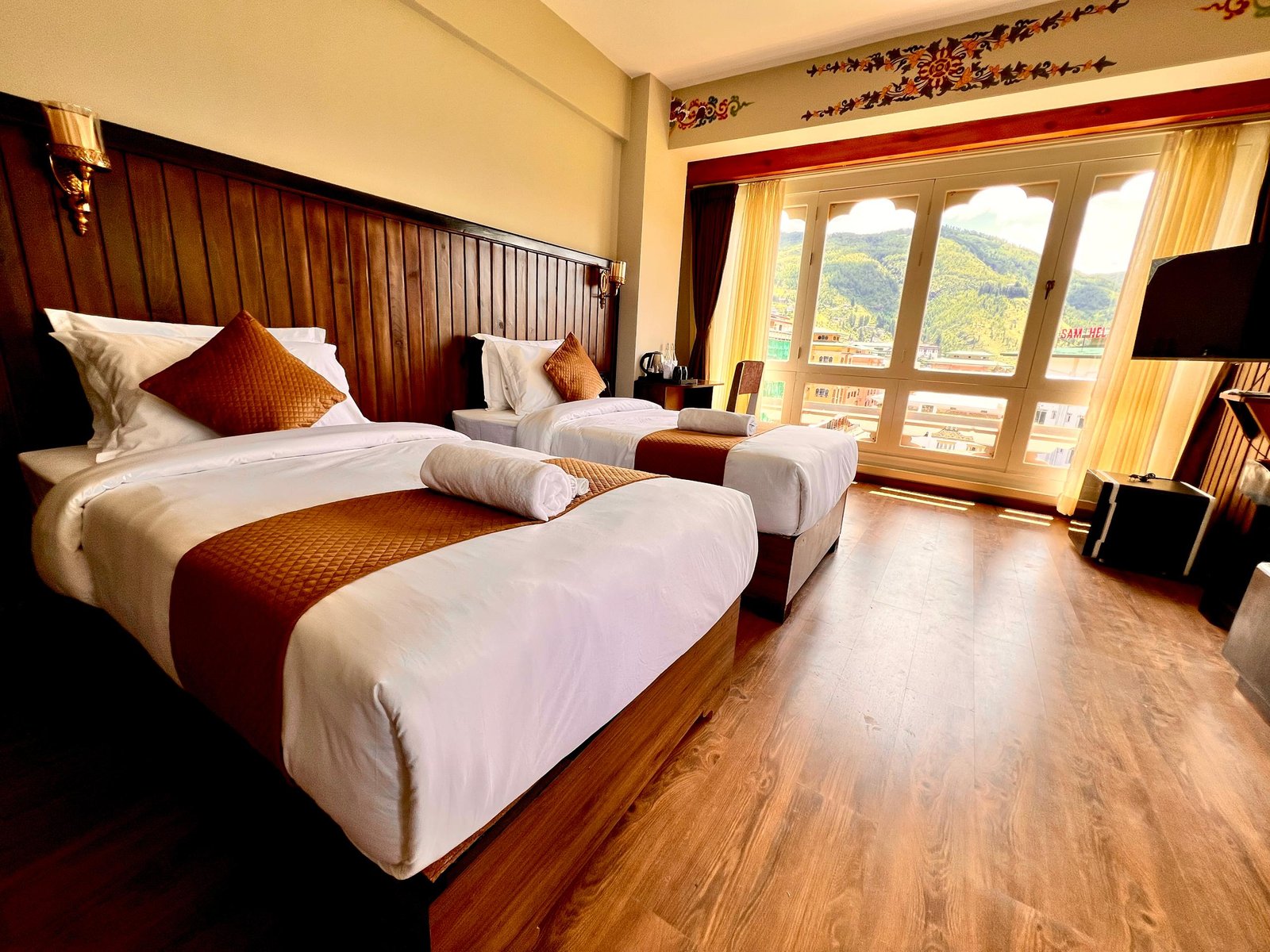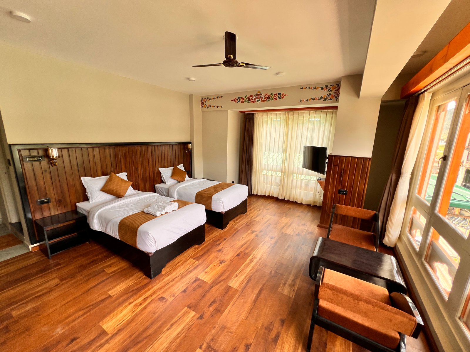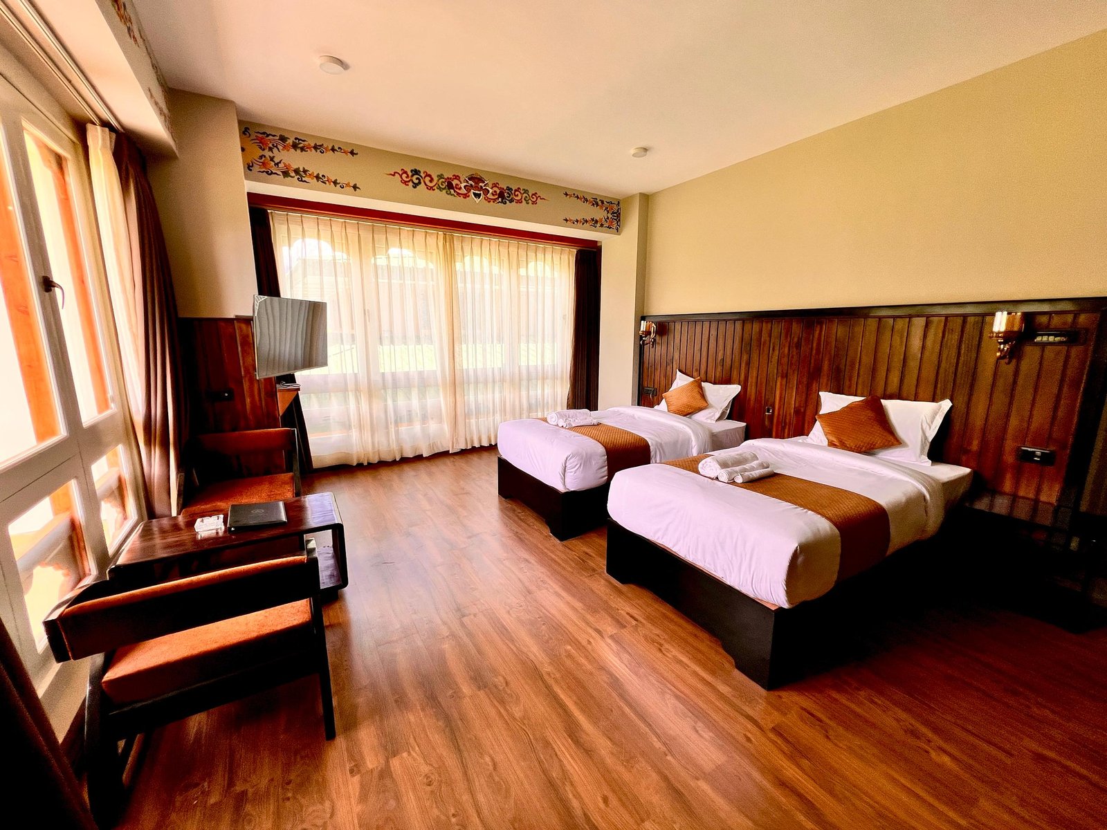 Hotel RoomsOur Deluxe rooms offer a comfortable and stylish retreat, featuring all the essentials you need for a relaxing stay. Ideal for solo travelers or couples.Nu. 3,500 per night -