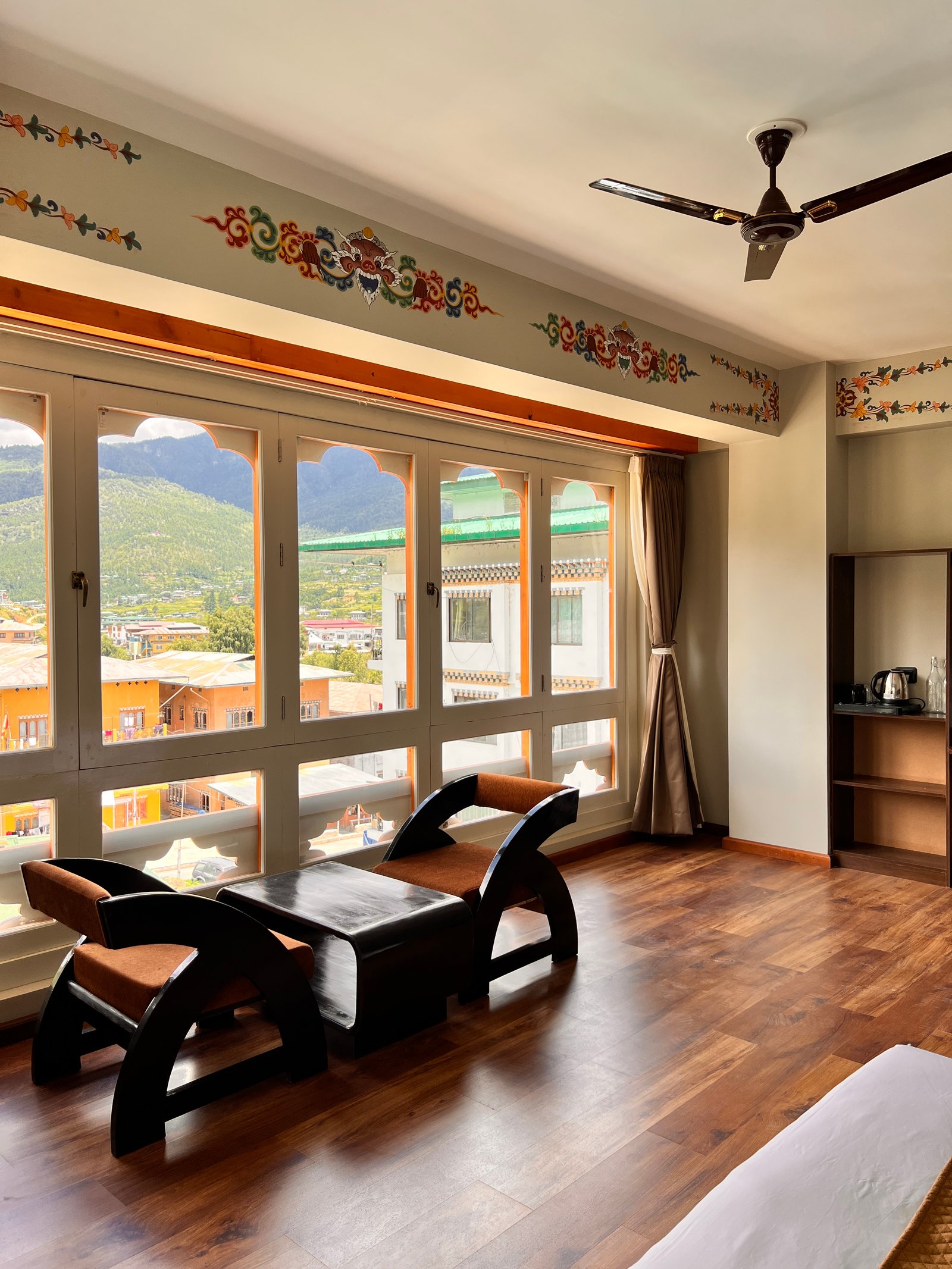 Designed with passion and precision, our boutique hotel features only sixteen spacious and elegantly crafted rooms, ensuring every guest enjoys personalized comfort, privacy, and dedicated hospitality. Our interiors and exteriors are a true celebration of Bhutanese craftsmanship, infused with rich wooden elements that exude warmth and authenticity.